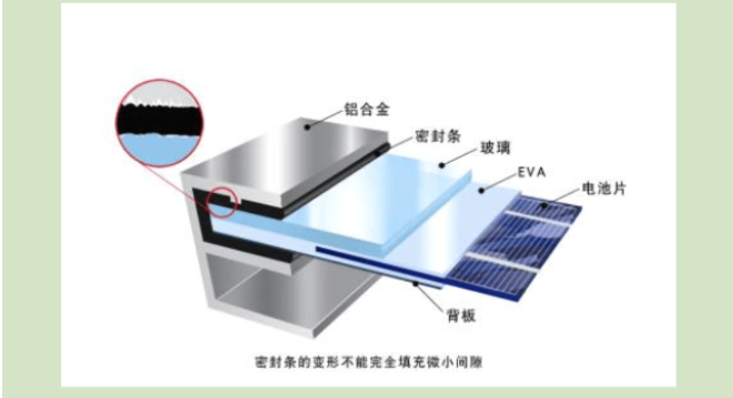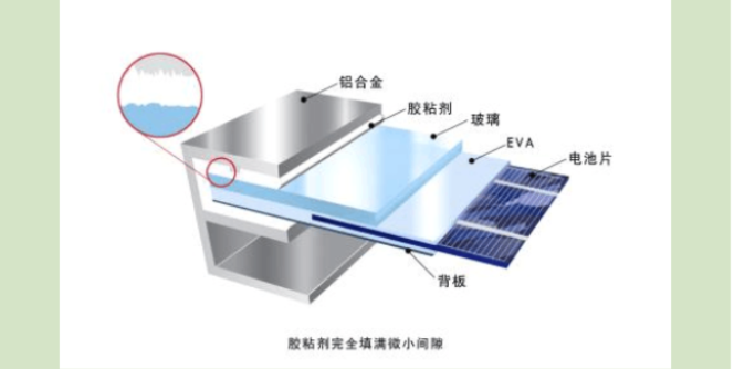 太阳电池组件在使用过程中,因风载、积雪、冰雹等外力载荷和温度变化会使部件之间产生一定变形和相对位移,因此胶粘剂应当具有良好的吸收变形的能力,来调节被粘接物的受外力变形能力防止太阳电池组件在使用环境中造成损坏。如果太阳电池组件在交变温度中使用,胶粘剂可在不同材料间进行微量伸缩或变形,通过微量伸缩或变形的过程可有效调节不同质材料间的热膨胀差异,从而达到牢固粘接成一体之目的。