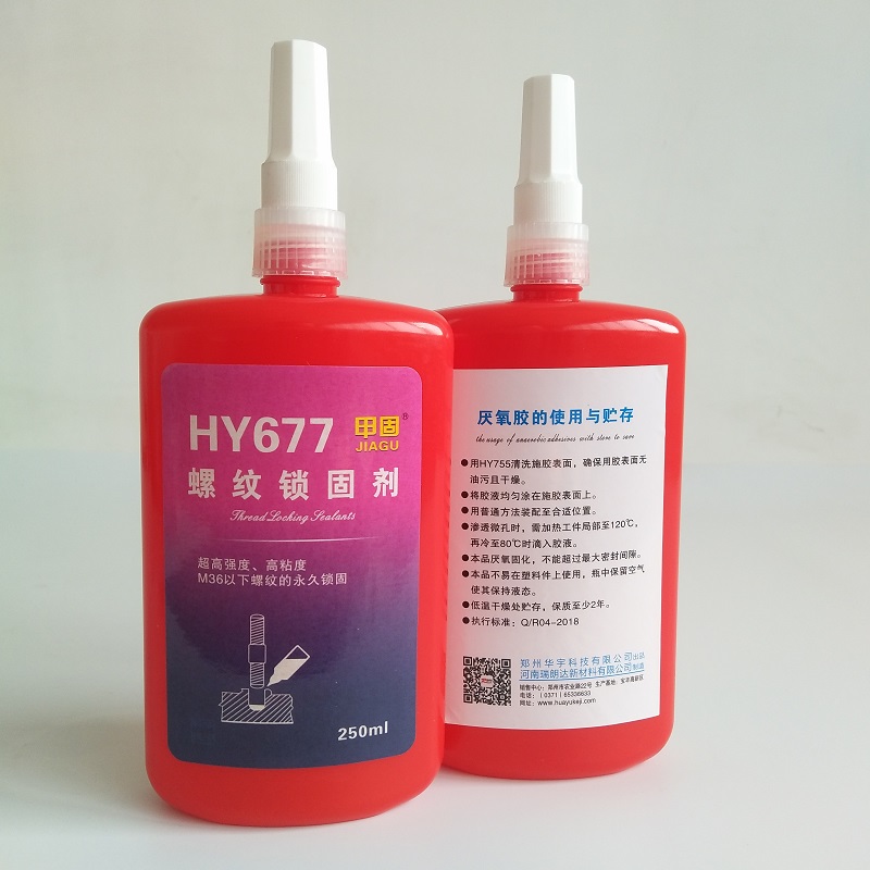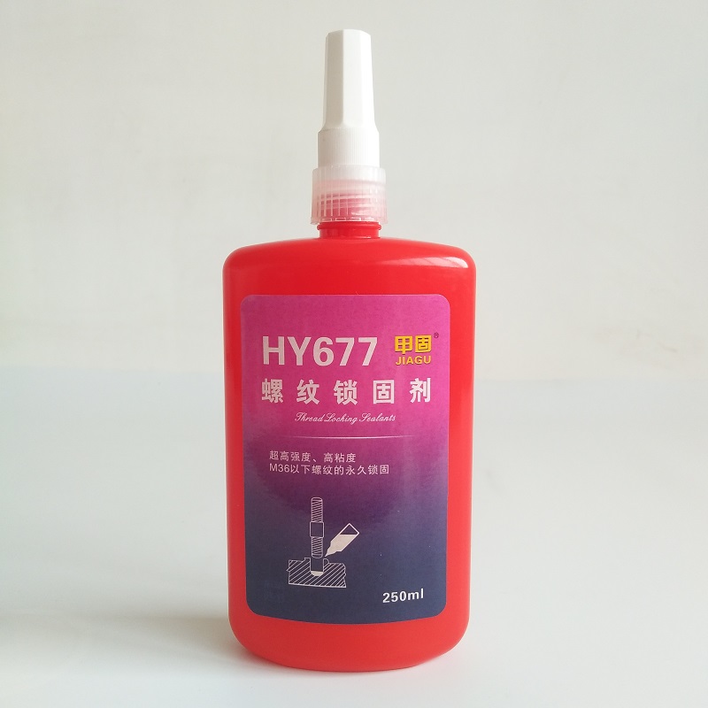 HY677螺纹锁固剂具有超高强度、高粘度,耐化学介质性优良等优异性能。螺纹锁固胶广泛用于M36以下螺纹的 性紧固密封,加热拆卸。