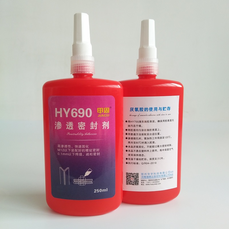 HY690渗透密封剂具有高渗透性、低粘度、快速固化等优异性能。螺纹锁固胶广泛用于已装配好的M2~M12螺纹的紧固密封。