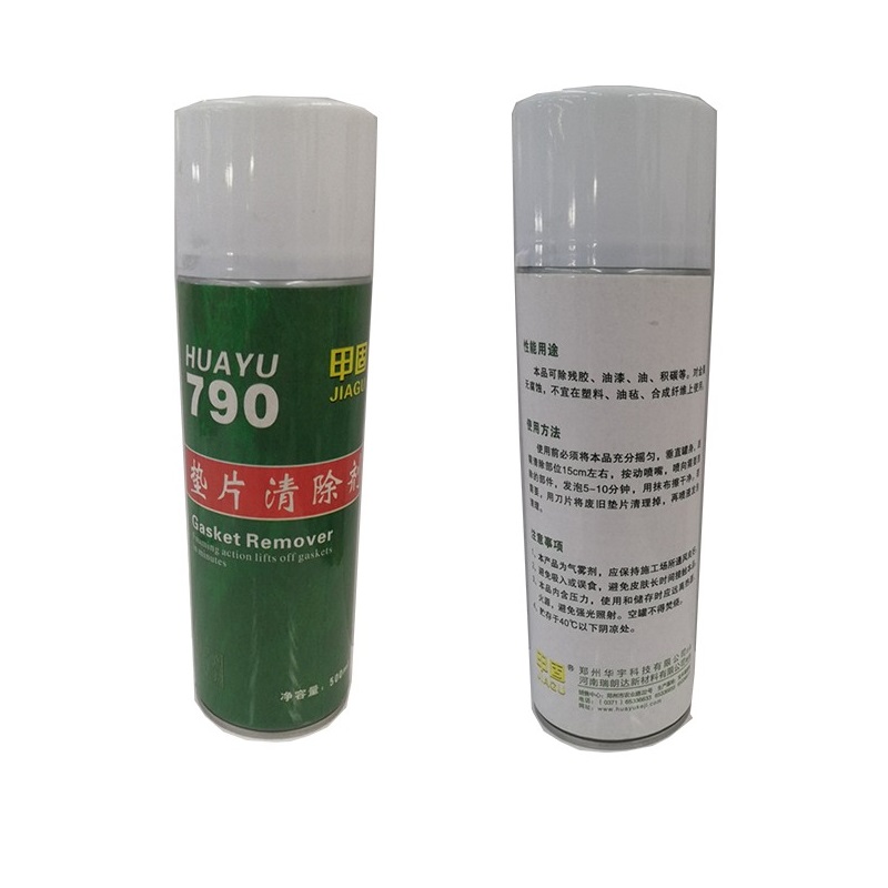 HY790垫片清除剂可除残胶、油漆、油、积碳等。垫片清除剂对金属无腐蚀,不宜在塑料、油毡、合成纤维上使用。500m气雾罐。