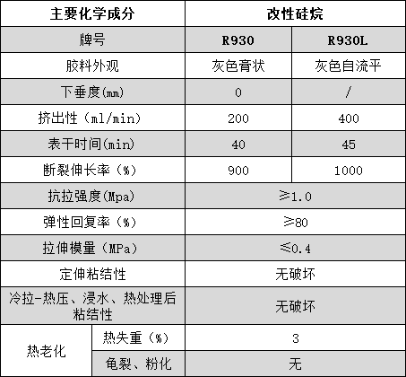 R930L为自流平型,有单组份和双组份两种。专为机场跑道、高速公路、隧道、桥梁及其他混凝土或沥青道面胀缝、缩缝、纵缝的长效耐候密封而特别设计的改性硅酮密封胶,具有低模量高位移特性,适应混凝土接缝变位。