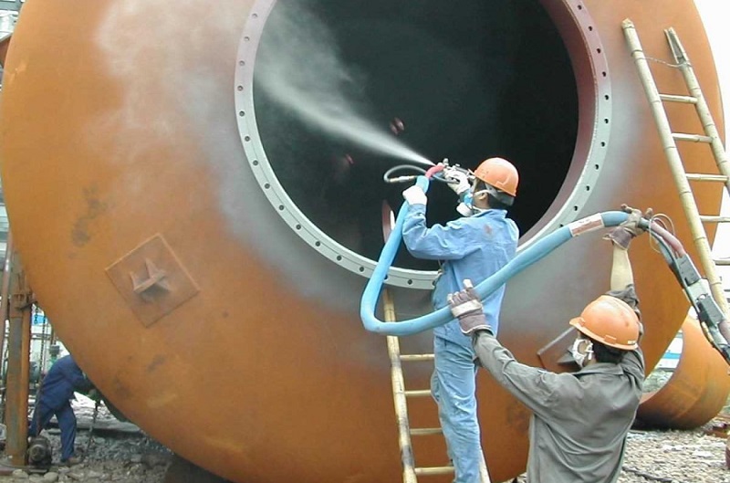 该法是用特制喷胶枪,借助干燥压缩空气,将胶液喷射到粘接表面上,喷涂的特点是胶层厚度均匀,生产效率高,适宜大面积粘接。对于大面积水池防水产品-利鼎防水漆施工过程,可通过喷涂进行施工。