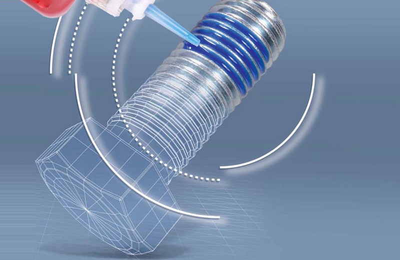螺纹锁固密封胶是利用空气中氧的阻聚作用,使胶液保持液态。在施工过程中,将胶液涂覆在螺纹表面,在螺纹拧紧前,空气中的氧气使胶液不固化;当将螺纹拧紧后与空气隔绝固化,液体交联成性能优良的热固性固体,填充整个螺纹间隙,可防止因震动和冲击造成的松动和渗漏。