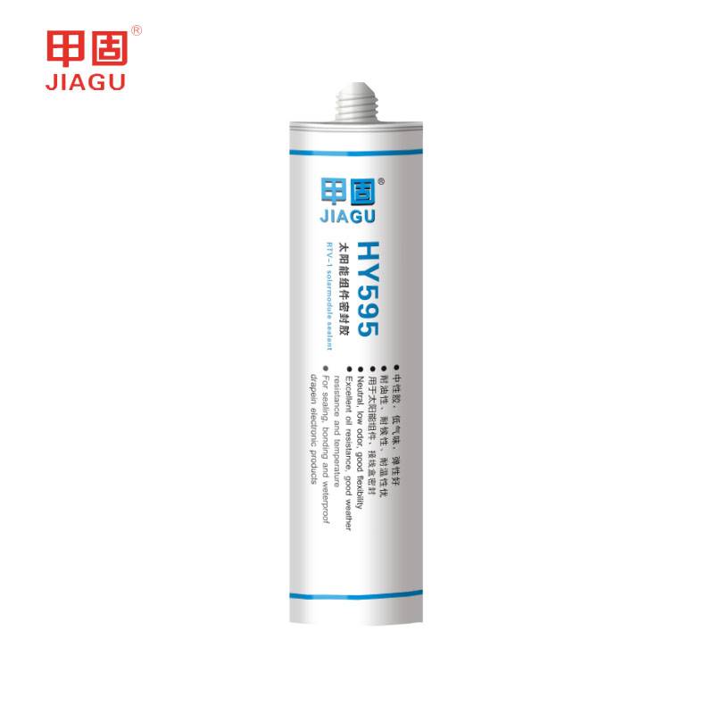 单组分、室温固化、中性有机硅材料。耐高低温,具有优良的耐老化性、柔韧性、绝缘性,防潮、抗震、耐电晕、抗漏电。立面不流淌、可粘接钢铁、铝板、玻璃、PVC、ABS、EVA等材料。专用于太阳能电池板边框密封,接线盒的粘接固定。还可用于电子元器件的各类粘接密封。通过ROHS、CE、UL等检测认证。