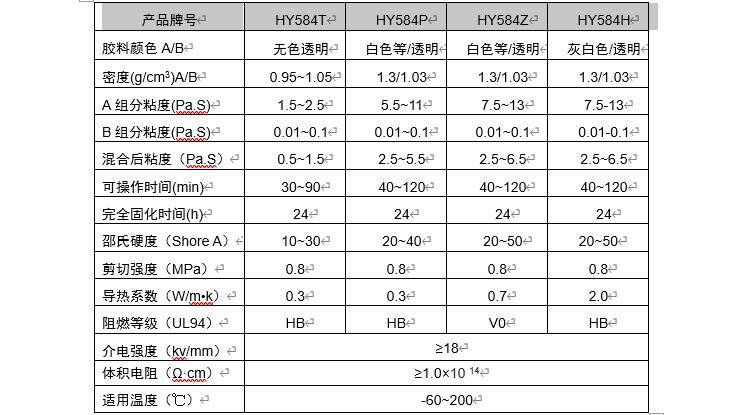 HY584Z适用于电子元器件有导热阻燃要求的各种灌封、密封。